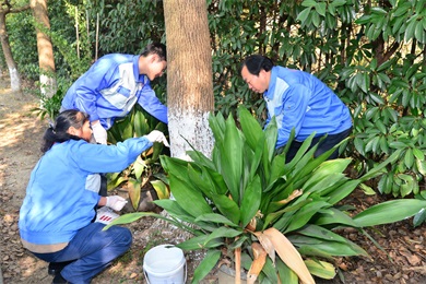 護一顆樹(shù)暖一個(gè)冬,隨著(zhù)氣溫的逐漸下降,樹(shù)木開(kāi)始進(jìn)入休眠期。為保證樹(shù)木順利越冬,控制病蟲(chóng)害,近日,由各支部聯(lián)合組織“樹(shù)木穿新衣, 溫暖增顏值”活動(dòng),對廠(chǎng)區樹(shù)木進(jìn)行刷白工作,為樹(shù)木披上一層溫暖的“新衣”。