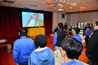 冬日暖陽(yáng)緩緩升起,輕柔的陽(yáng)光透過(guò)道德講堂的大玻璃窗,照進(jìn)歡快溫暖的教室。
