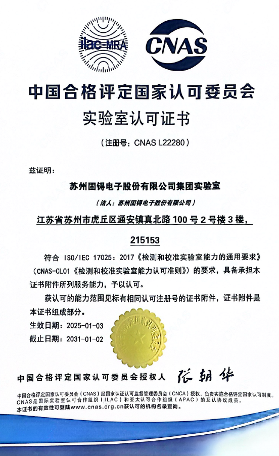 ? | 蘇州固锝電子股份有限公司集團實(shí)驗室擁有國內一流的功率分立器件及特色IC產(chǎn)品的可靠性及失效分析實(shí)驗設施,設備,實(shí)驗室項目參考JEDEC相關(guān)標準。 |