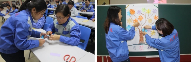 在創(chuàng )意指尖的環(huán)節,大家認真跟著(zhù)視頻學(xué)習。這不,家人們用剪刀剪出了心中期盼的雪花,還不忘和身旁的家人一起分享方法,互幫互助。最后,帶著(zhù)祝福將雪花們匯聚成樹(shù)。