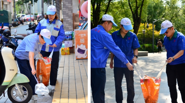 大家帶上工具和環(huán)保垃圾袋,兵分兩路,干勁十足。沿途彎腰拾撿道路上的廢紙、果皮、煙頭等各種垃圾,當然隱藏在綠化帶中的垃圾也逃不過(guò)志愿者的“火眼金睛”,順勢停下探身去撿,不放過(guò)任何死角。家人們將凡事徹底的精神落實(shí)到底,撿起一片垃圾,讓街道少一點(diǎn)臟亂,多一份干凈。在志愿者們的認真清潔下,手中拎著(zhù)的環(huán)保袋里 “戰利品”越來(lái)越多,收獲滿(mǎn)滿(mǎn)?;厥自倏?,人行道煥然一新,街邊的綠化帶再也沒(méi)有垃圾的“點(diǎn)綴”,變得更加綠意盎然。