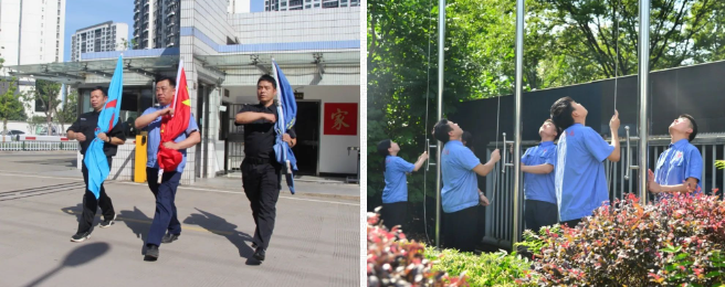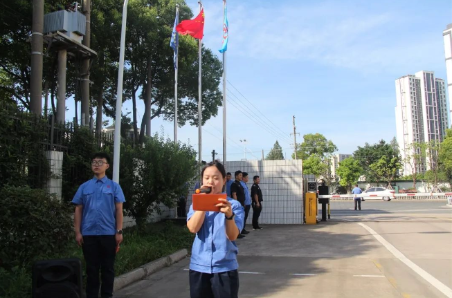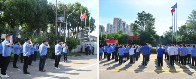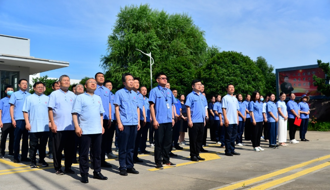 6月28日,迎著(zhù)清晨的朝陽(yáng),各部門(mén)家人在總廠(chǎng)及IC廠(chǎng)門(mén)衛集合,舉行莊嚴而又隆重的升國旗儀式。