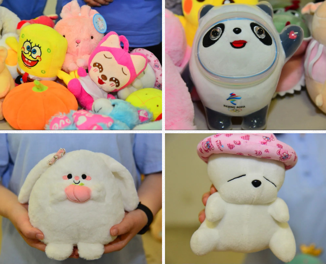 家人們帶著(zhù)各色各樣的毛絨娃娃陸續前來(lái)捐贈,瞧,兔子、青蛙、大熊、貓咪、小狗、狐貍,可愛(ài)的小動(dòng)物們越聚越多,桌子上立馬成了動(dòng)物園!還有許多耳熟能詳的卡通形象,比如冰墩墩、寶可夢(mèng)、史迪仔等??梢韵胂蟮玫?,當孩子們得到這些玩具時(shí),該會(huì )有多么開(kāi)心幸福!