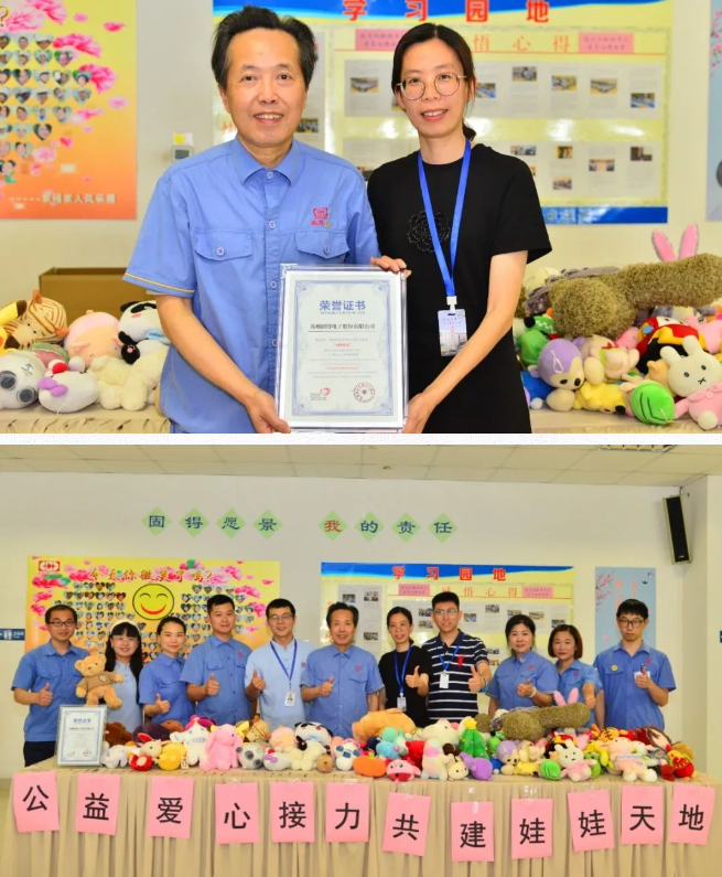 近日,以“公益愛(ài)心接力,共建娃娃天地”為主題的毛絨娃娃捐贈活動(dòng)在公司幸福餐廳舉行。一個(gè)娃娃,就是一個(gè)孩子的快樂(lè )?;蛟S再也回不去孩童時(shí)代,但我們卻可以重溫當年的美好回憶,將心中的愛(ài)與善意傳遞!