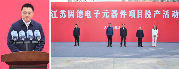 3月30日上午10時(shí)08分,江蘇固德電子元器件有限公司舉行了一期項目投產(chǎn)儀式。宿豫區委書(shū)記、宿遷高新區黨工委書(shū)記殷其國,宿豫區委副書(shū)記、區政府區長(cháng)、黨組書(shū)記徐源,宿豫區政協(xié)主席、黨組書(shū)記劉后舉,蘇州固锝電子股份有限公司董事長(cháng)吳炆皜,總經(jīng)理滕有西,江蘇固德電子元器件有限公司董事長(cháng)魯俐等一行領(lǐng)導出席投產(chǎn)儀式。徐源區長(cháng)主持儀式。