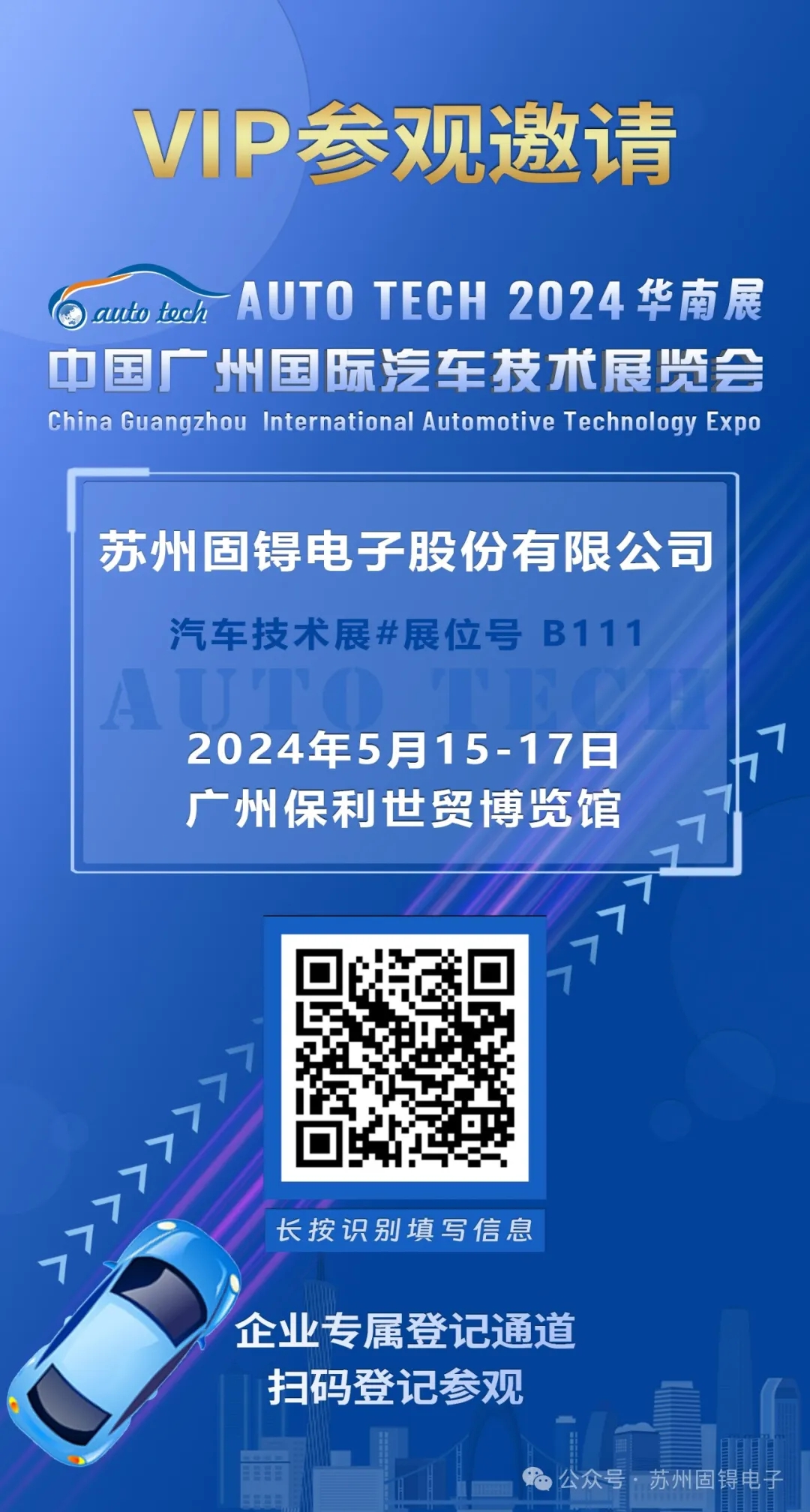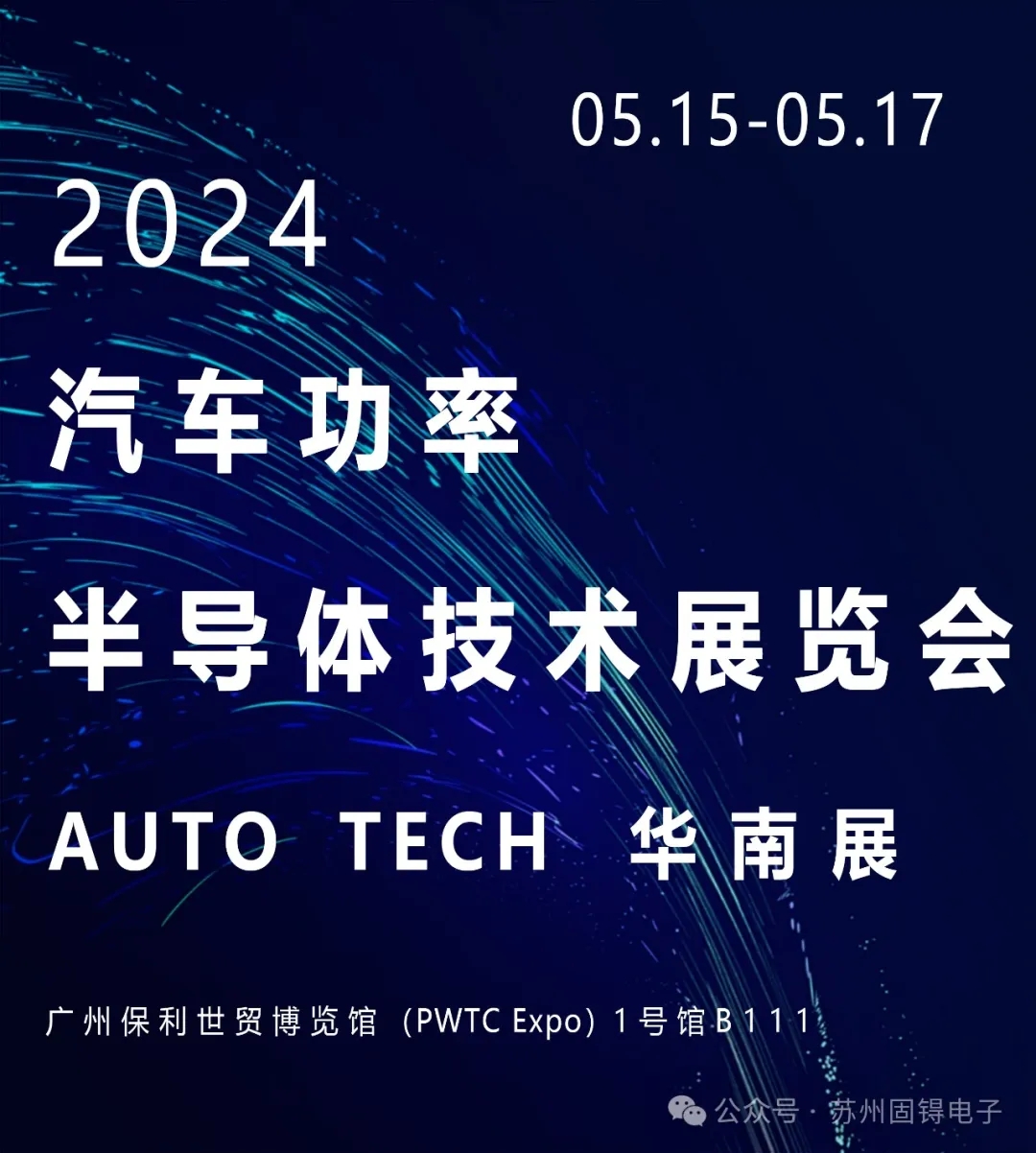 我們誠摯地邀請您參加即將于5月15日至17日在廣州保利世貿博覽館(PWTC Expo)隆重舉行的AUTO TECH 2024 廣州國際新能源汽車(chē)功率半導體技術(shù)展覽會(huì ),蘇州固锝將攜其最新技術(shù)成果和產(chǎn)品亮相此次盛會(huì ),與業(yè)界同仁共襄盛舉。