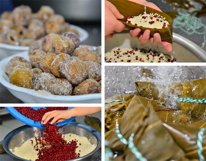 “五月五,過(guò)端午,粽葉青,糯米香”,新鮮的粽葉,搭配軟滑的糯米、綿密的紅豆,經(jīng)過(guò)用心的準備和細致的加工,匯聚成一顆顆軟糯的香粽,空氣中彌漫著(zhù)食材的味道,也是家的味道。