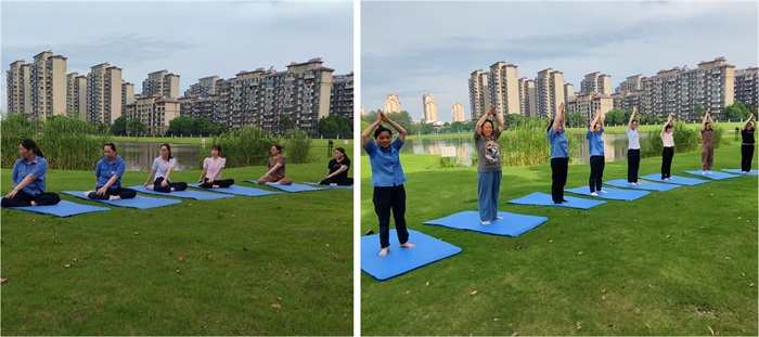 藍天白云下,家人們來(lái)到戶(hù)外,進(jìn)入寧靜的瑜伽世界,跟隨音樂(lè )閉上雙眼,放松肩頸,緩解了一天的疲勞。家人們開(kāi)心地說(shuō)道:“這是我們第一次練瑜伽,看似簡(jiǎn)單的動(dòng)作卻不容易,全程的跟練讓人酣暢淋漓,這次體驗讓身心都得到了放松?!?/span>