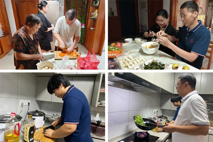 “阿姨我們來(lái)看您來(lái)了,最近身體還好吧!”“蠻好??!蠻好??!”阿姨用蘇州方言回答,顯得中氣十足。阿姨想讓大家坐下來(lái)歇歇,但家人們干勁兒十足,馬上開(kāi)始摘菜、洗菜、切菜;嘩啦嘩啦、喀嚓喀嚓、鏗里框朗。不一會(huì )兒,香氣撲鼻的水餃或菜肴已經(jīng)上桌。