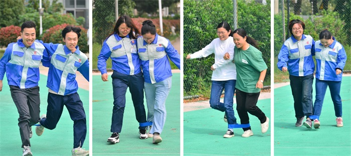 兩人三足,不僅是速度的較量,更是對團隊的考驗。第五組的家人高喊著(zhù)“一、二、一”的口號,如一人之勢飛奔向前,折返后,行走如飛沖向終點(diǎn),對手雖然前進(jìn)較緩,但勝在不半途而廢,堅持奔赴終點(diǎn)。大家齊心協(xié)力,經(jīng)歷默契與協(xié)作的考驗,沉浸在運動(dòng)的歡樂(lè )氛圍中!
