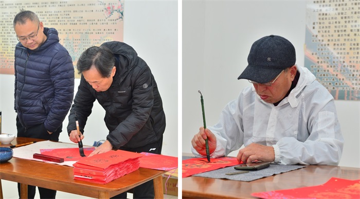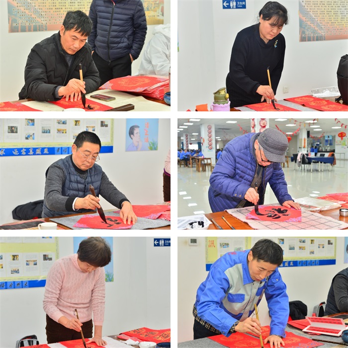 原公司退休老干部章總監、何顧問(wèn)和他們在老年大學(xué)的幾位同學(xué),一起到公司,開(kāi)展寫(xiě)春聯(lián)送“?!被顒?dòng)。