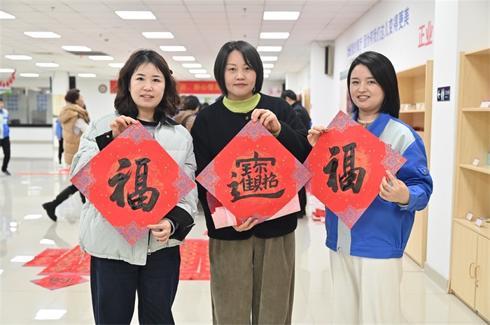 濃郁的年味伴隨著(zhù)墨香彌漫現場(chǎng),“事業(yè)有成滿(mǎn)堂春,財運亨通全家樂(lè )”“日子紅火騰騰起,時(shí)運亨通步步高”……這些充滿(mǎn)祝福的對聯(lián),引得公司家人們一邊駐足觀(guān)賞,一邊挑選。