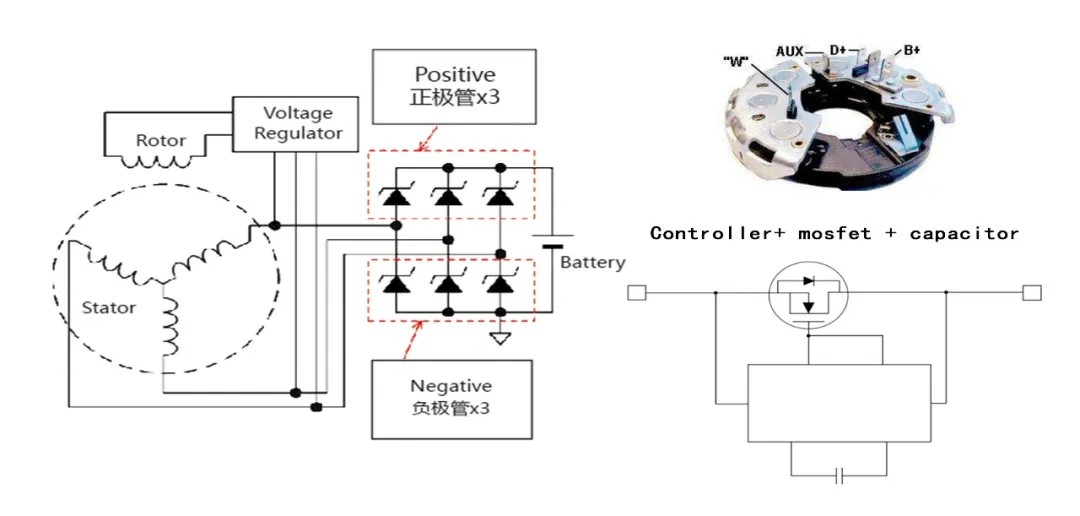 通常來(lái)說(shuō),汽車(chē)整流器組由6個(gè)整流二極管組成,但有時(shí)候會(huì )因為不同的設計需要更多的整流二極管去構成該整流器。