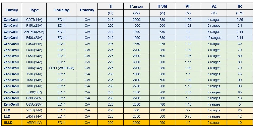 適用于所有二極管類(lèi)型ZEN,ULLD(ARD Active Rec. Diode),LLD 的外殼設計
