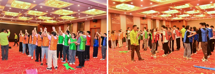 如果說(shuō)開(kāi)營(yíng)儀式是“破冰”的序章,那么接下來(lái)的互動(dòng)環(huán)節才是真正的“熔爐”。 “水果連連看”“步步高升”,讓協(xié)作基因融入每一次接力、每一回配合。我們手拉手,在 “幸會(huì )” 的呼應里,在 “加油” 的吶喊中,將信任擰成繩,把團隊煉成鋼,這是青春該有的滾燙!