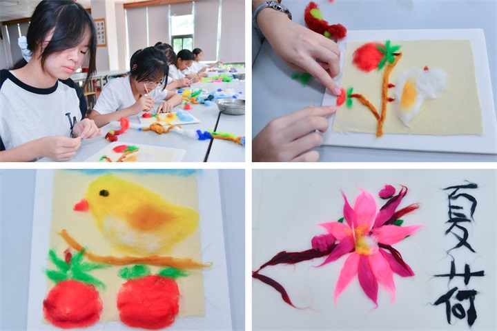 如果說(shuō)課堂是成長(cháng)的土壤,那特色課程就是最燦爛的陽(yáng)光!書(shū)法課上,墨香里飄著(zhù) “慢慢來(lái)” 的溫柔;舞蹈課上,大家踮腳轉圈,裙擺飛揚間跳出童年的靈動(dòng);美術(shù)課上,五彩斑斕的畫(huà)筆描繪出心中的夢(mèng)想;扎染課上,各種素材在染料里暈染出驚喜;絲畫(huà)課上,每個(gè)孩子都捧著(zhù)獨一無(wú)二的 “彩虹作品” 驕傲展示。