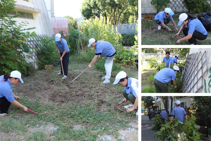 另一隊志愿者則走進(jìn)了校園角落的那片“小田園”——那是孩子們親近自然、觸摸生命的土地。他們彎腰俯身,拔除雜草、翻松土壤,汗水悄悄從額角滑落,笑容卻始終明亮。因為他們知道,不久之后,這里將再次發(fā)出新芽、結出果實(shí),也長(cháng)出孩子們對這個(gè)世界的驚奇與期待。