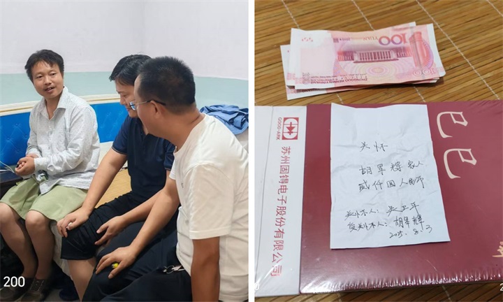 公司很快知道了他的情況。企業(yè)文化部吳衛平專(zhuān)程上門(mén),帶著(zhù)公司的一份溫暖——“急難關(guān)懷金”,第一時(shí)間送到了胡軍輝手中。